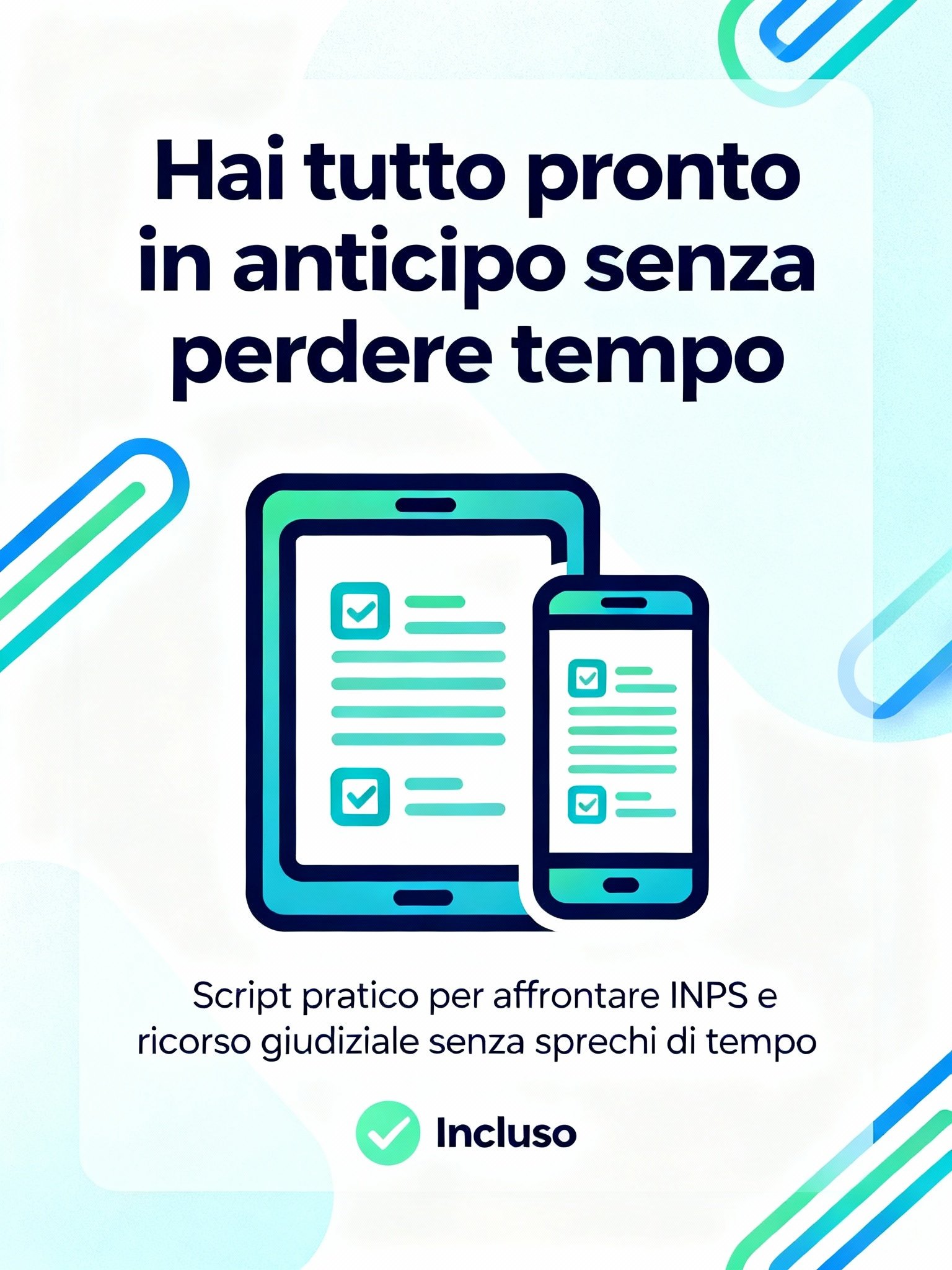 "L'avvocato mi voleva 4.500€ di anticipo. Con questa guida ho fatto il ricorso amministrativo da solo - non serve avvocato ed è gratis. L'INPS ha respinto. Allora sono passato al tribunale: avevo tutto pronto, l'avvocato ha solo depositato. Mi ha chiesto 800€ invece di 4.500€. Otto mesi dopo: ricorso vinto, 4.300€ di arretrati. Ho risparmiato una fortuna."