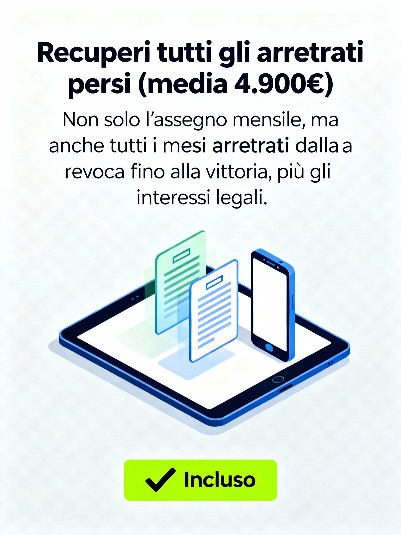 ✅ Ricorso vinto in tribunale ✅ 520€ al mese riattivati ✅ 8.400€ di arretrati sul conto ✅ Spesa totale: 197€ (guida) + 650€ (avvocato) = 847€ invece di 6.000€